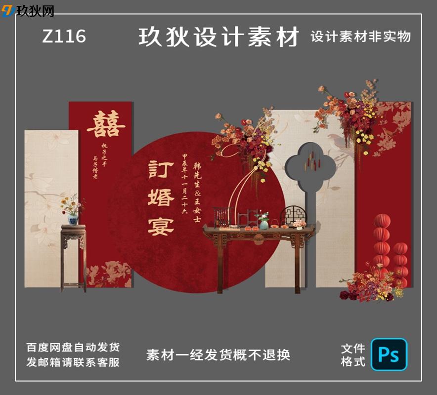 Z179订婚宴回门宴背景红色简约大气款PS源文件