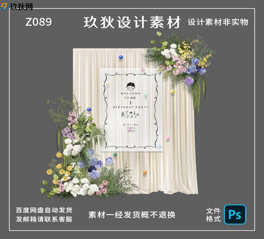 Z089香槟韩式布幔ins小众彩色花艺宝宝宴生日派对效果设计源文件