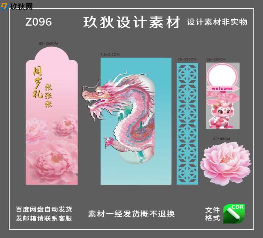 Z096网红龙宝宝周岁满月百天装饰布置KT定制背景墙仪式感CDR格式
